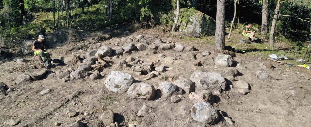 Så här inledningsvis har vi främst ägnat oss åt kartering och sökschaktning, för att avgöra hur många gravar det rör sig om och för att bestämma storlek och karaktär på boplatserna. Utifrån de gravformer som förekommer på gravfälten kan det röra sig om gravar från både äldre (500 f kr – 400 e kr) och yngre järnålder (400 – 1050 e kr). Här finns såväl högar som runda och fyrsidiga stensättningar. Än finns det också möjlighet att ytterligare gravformer framkommer under förundersökningens gång.